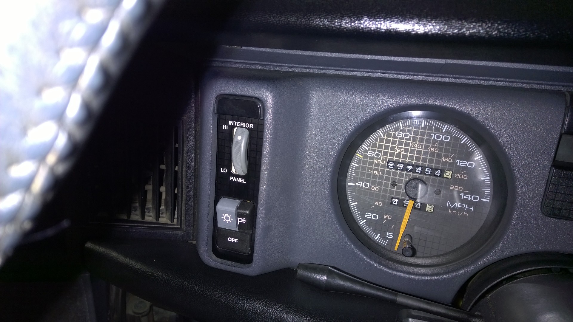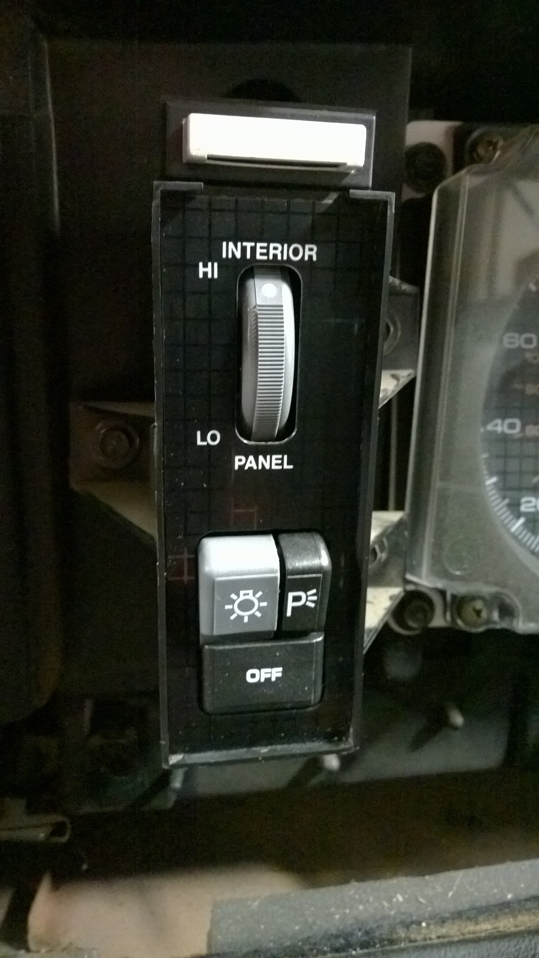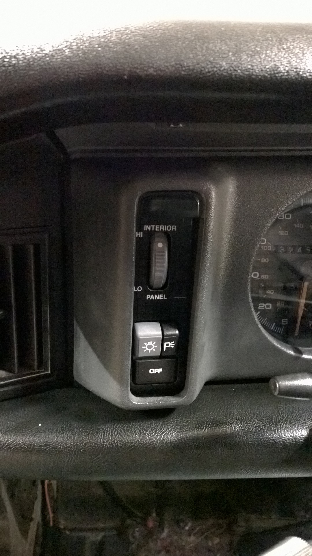 New dash pad test fit and headlight switch installed, correct grey/black: