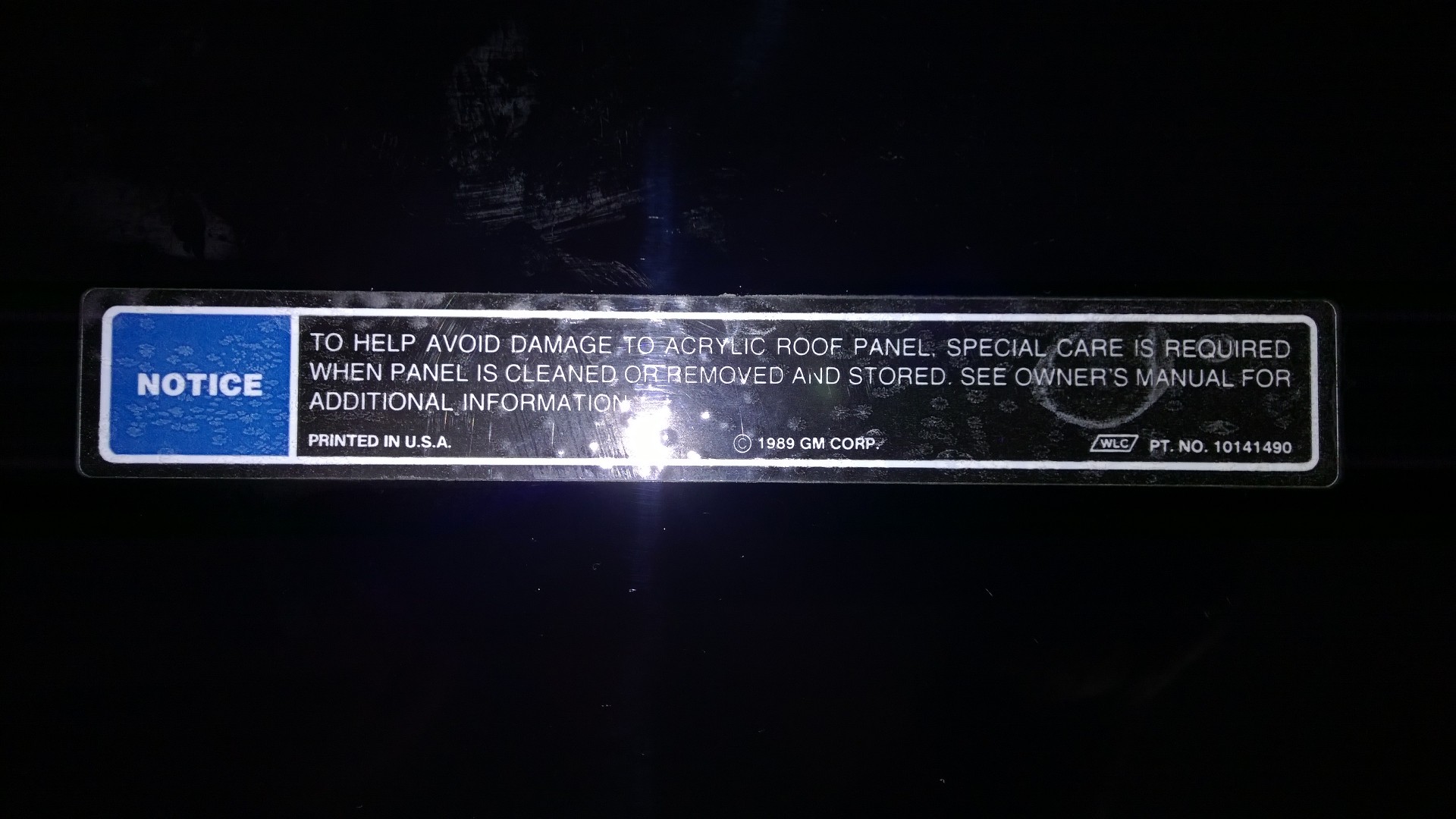 The t-top warning labels are still mint and the power mirror switch is still very nice and will be reused: