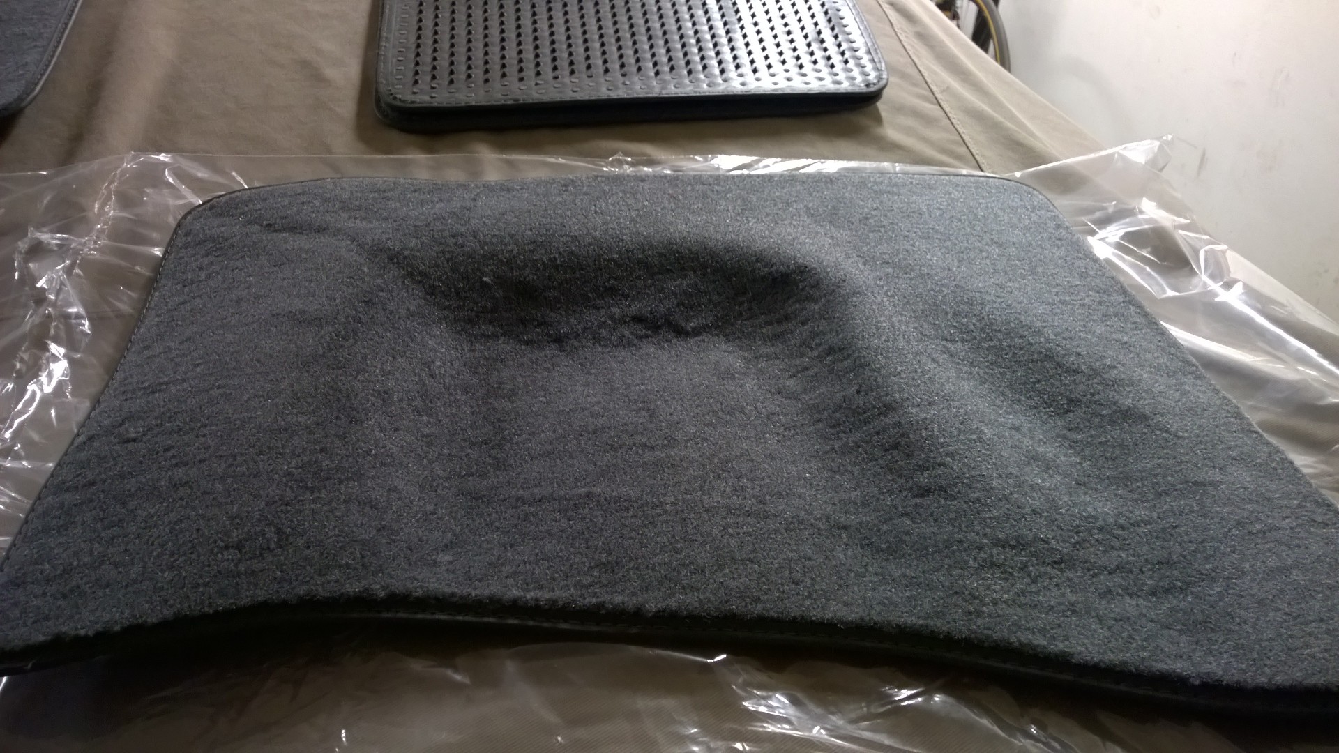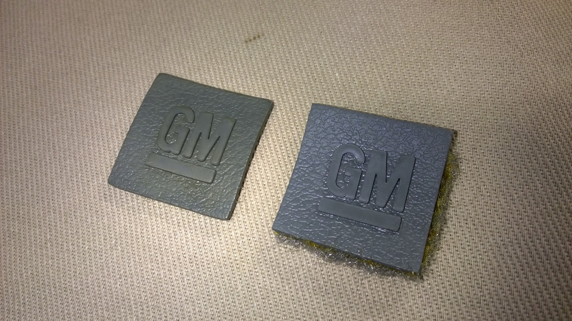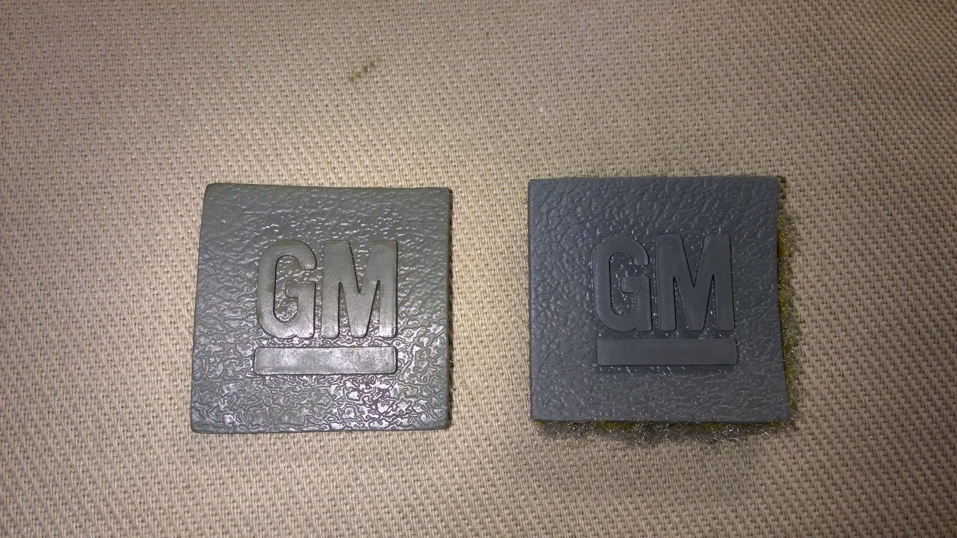 Reproduction floor mats that are correct and molded to fit the floor perfectly along with the original GM logos from another set that I'll be gluing onto them. The mats are made by ACC who also made the new carpet I'm using so the match will be perfect: