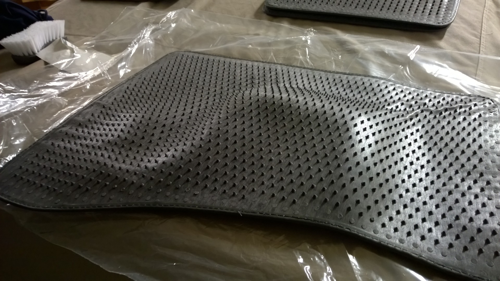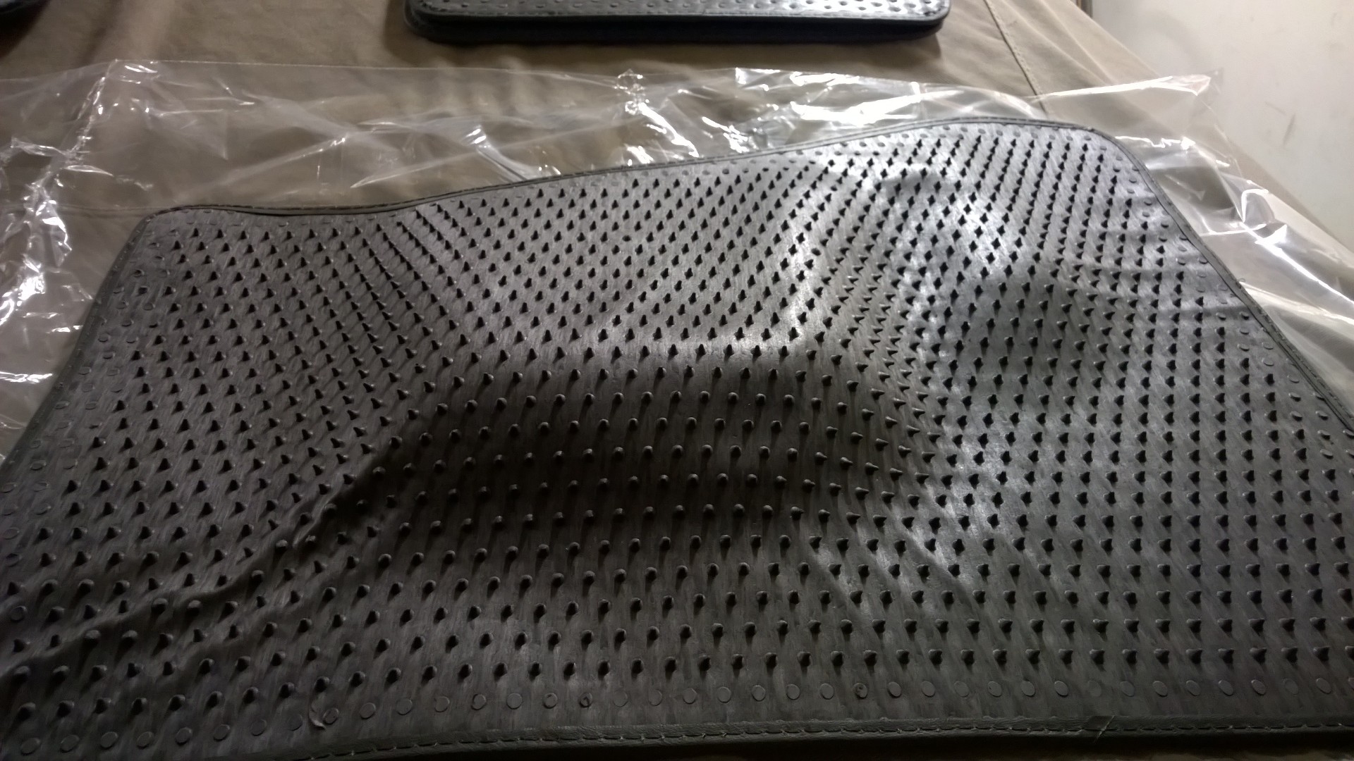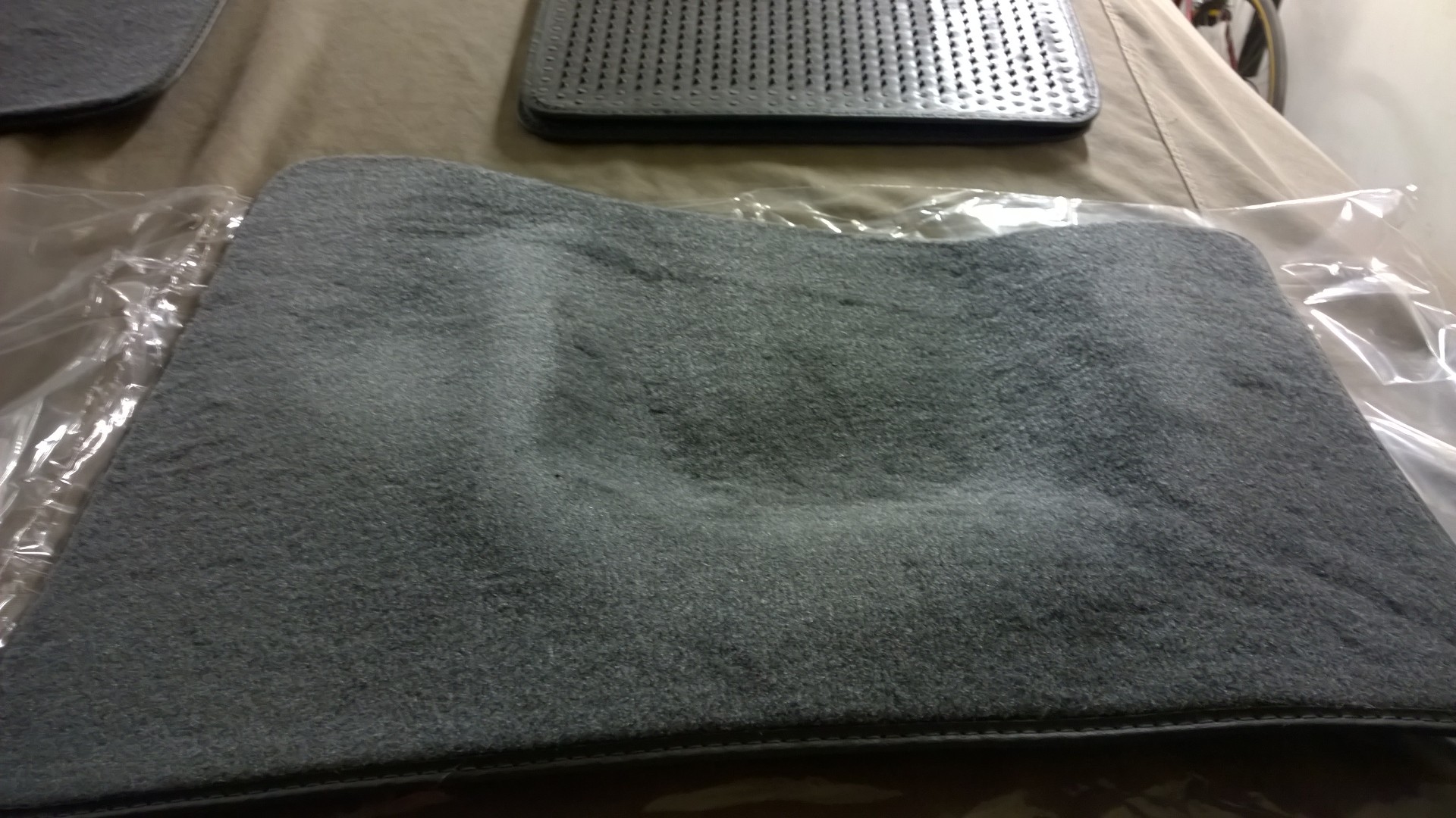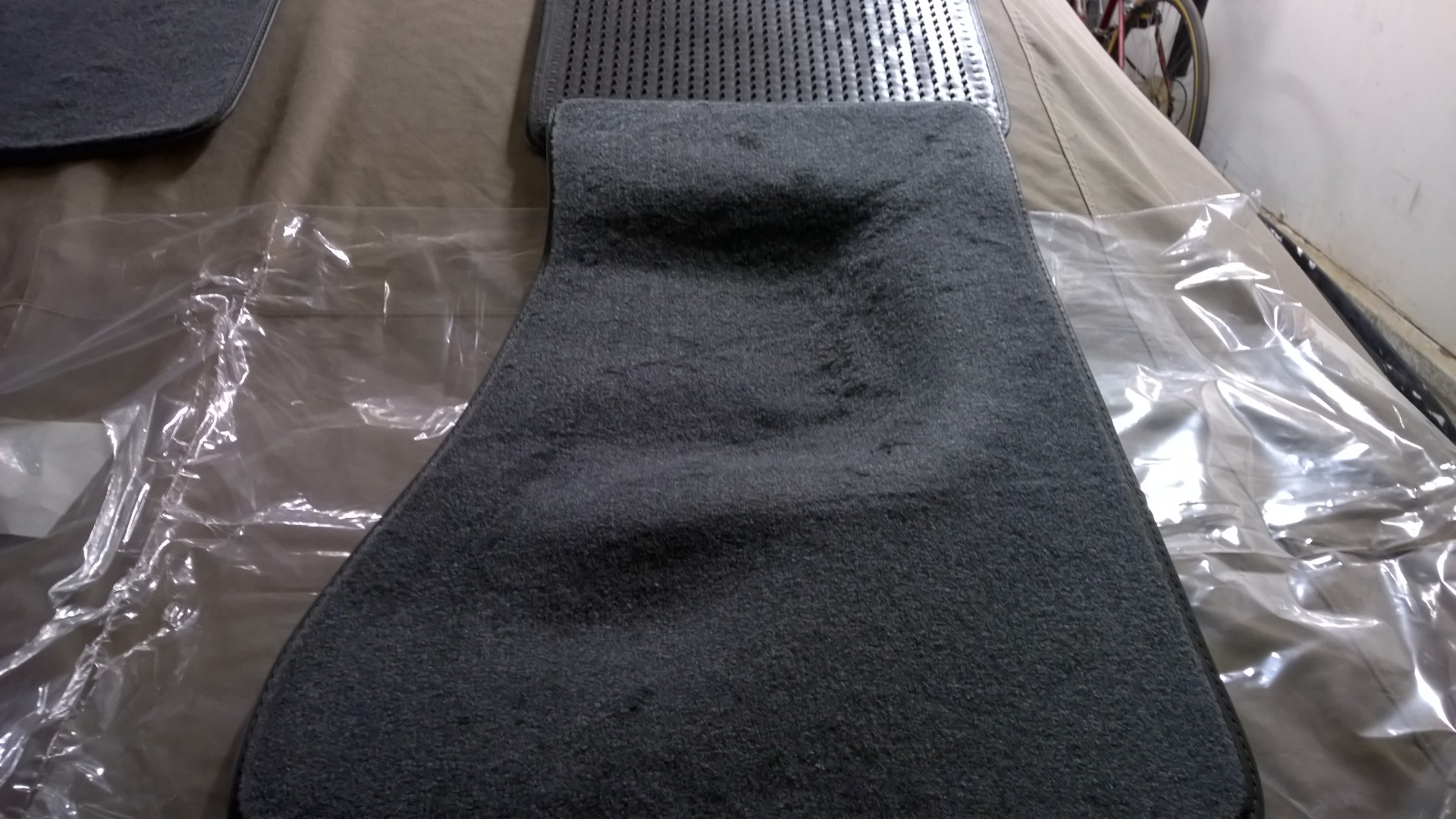 Reproduction floor mats that are correct and molded to fit the floor perfectly along with the original GM logos from another set that I'll be gluing onto them. The mats are made by ACC who also made the new carpet I'm using so the match will be perfect: