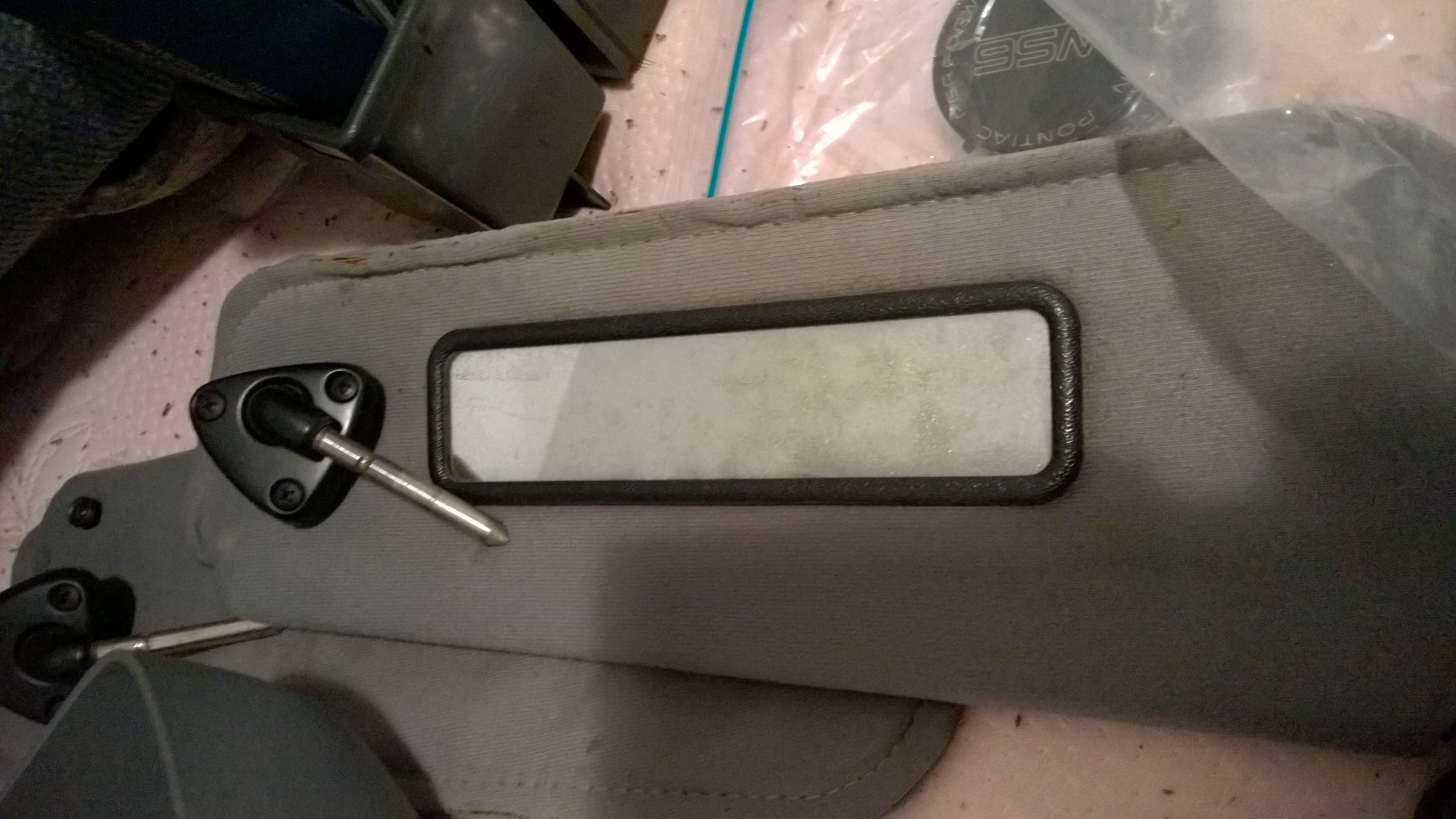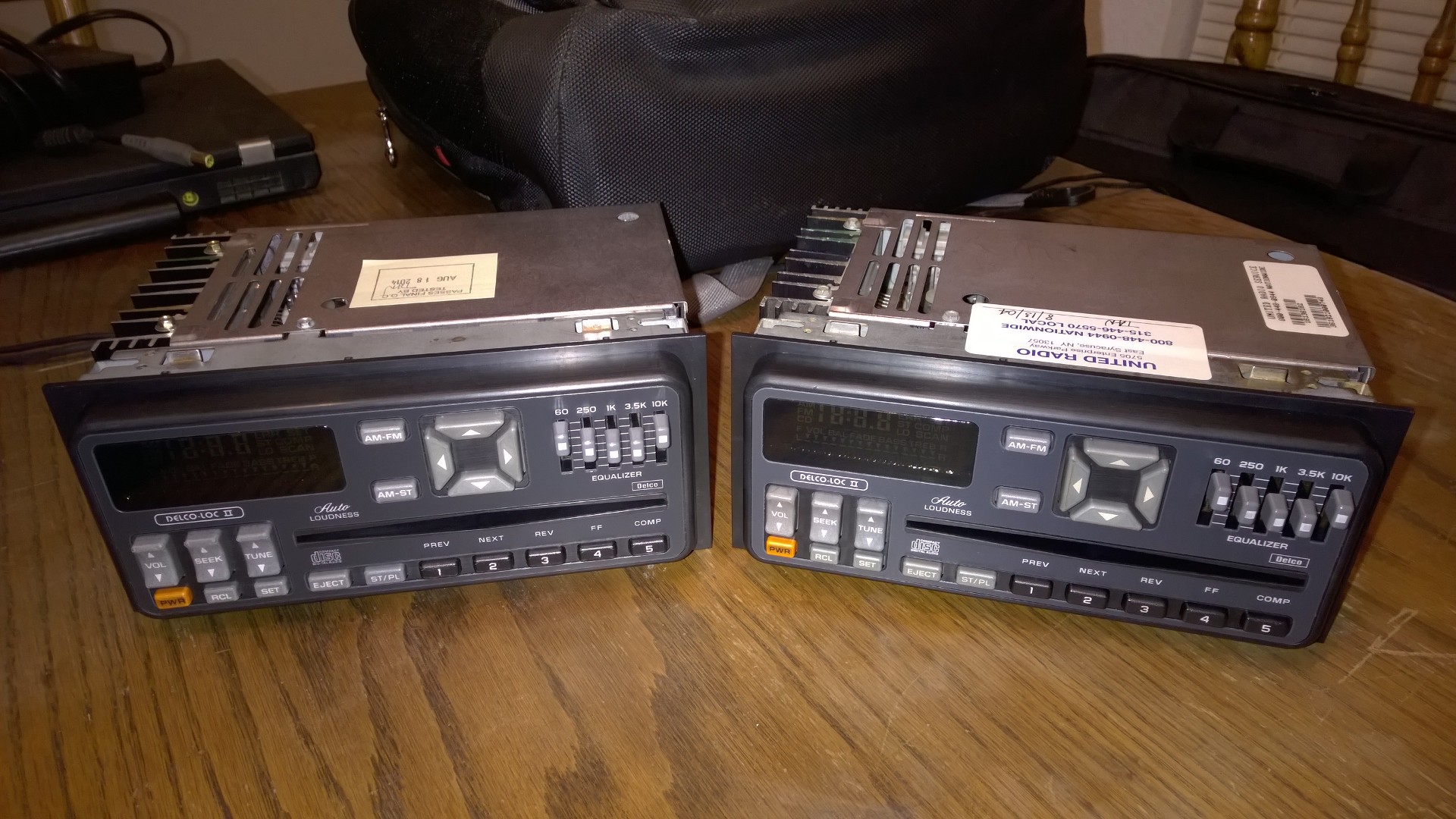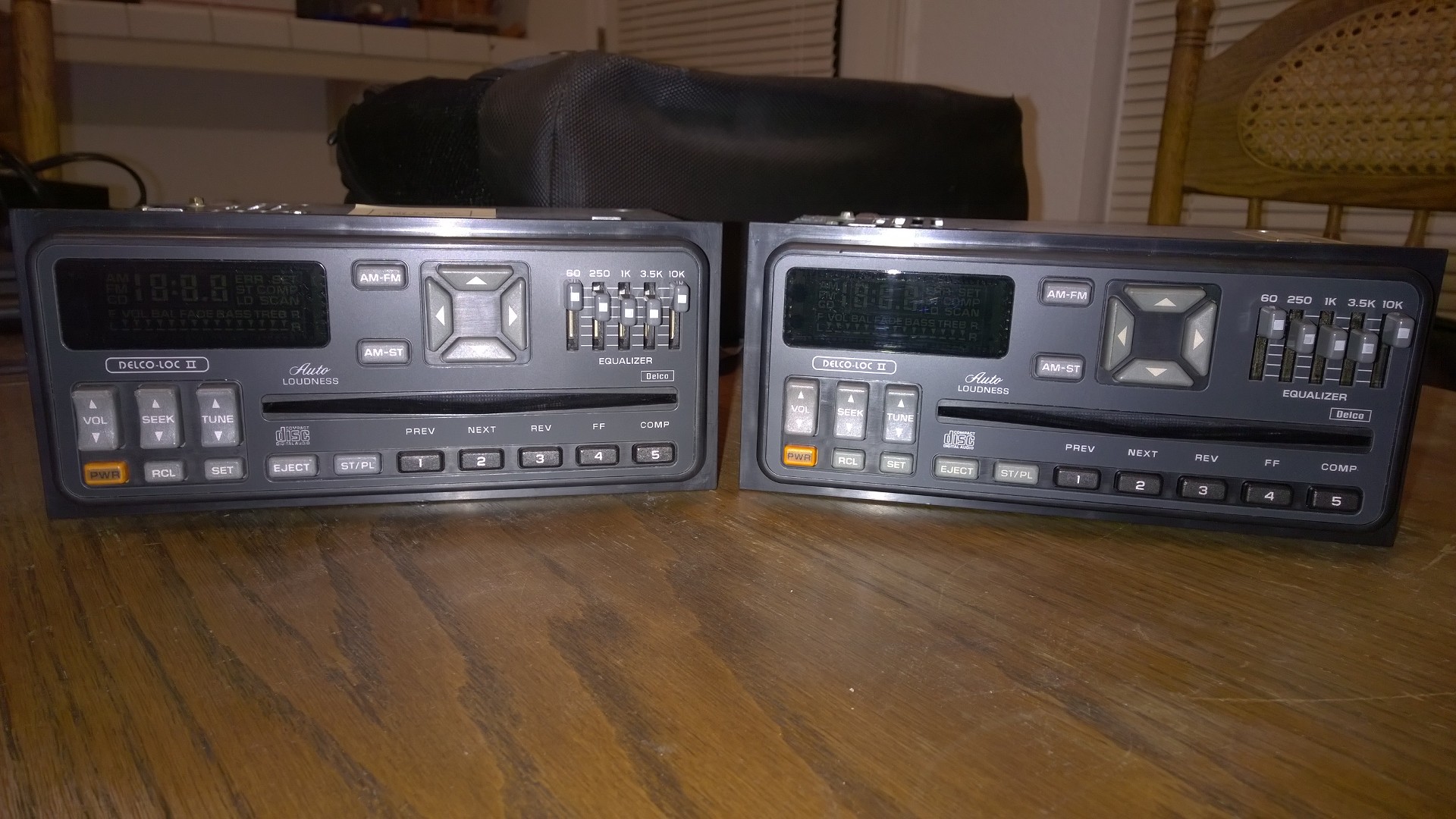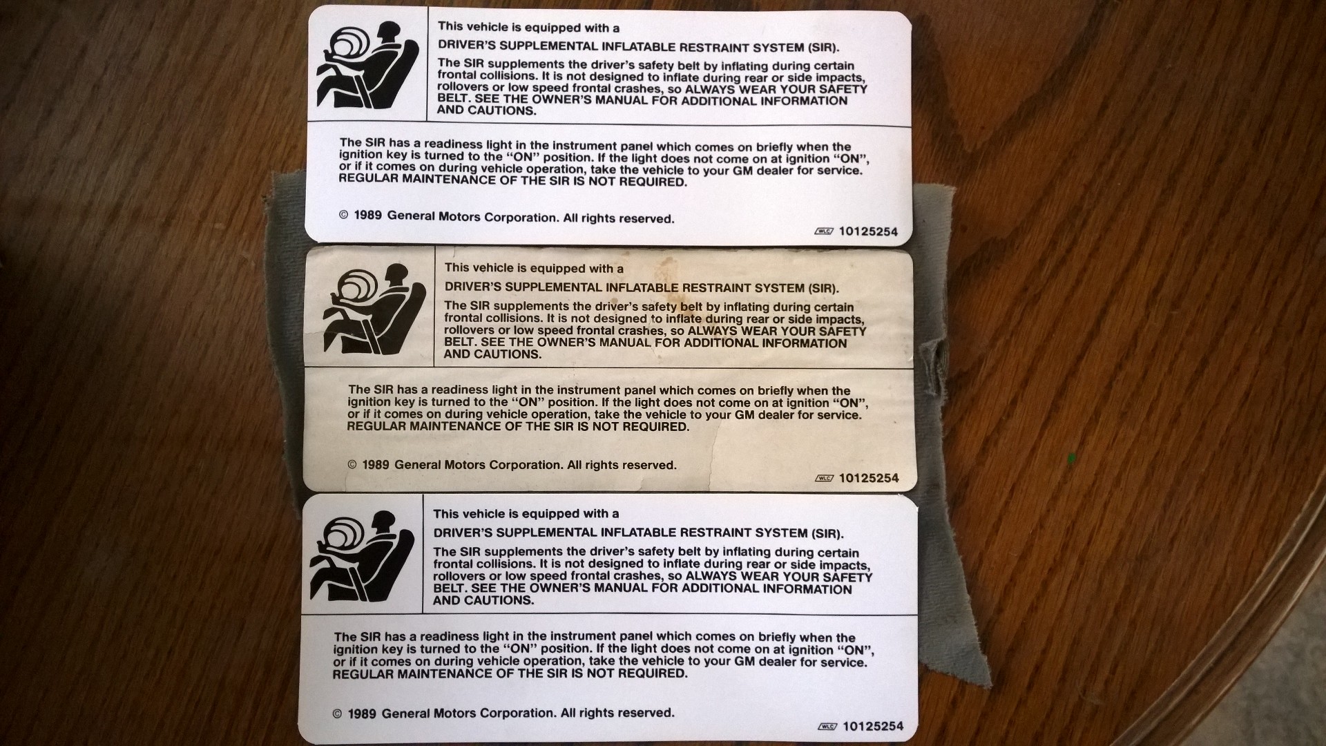 My totally remanufacured/restored factory CD players, reproduction air bag warning labels compared to my original, and my NOS shifter plate compared to my used one so you can see where the original warped. Also you can see how my original vanity mirror surface has deteriorated: